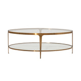 TWO TIER GLASS TOP OVAL COFFEE TABLE IN ANTIQUE BRASS
