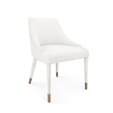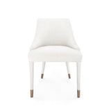 The elegant Odette dining armchair is wrapped head-to-toe in natural linen and shod in custom bronze sabots, which together give the piece an air of softness and quiet sophistication. It easily complements the most stylish interior design needs of the modern home.