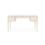 The Morris Collection desk marries strength and elegance in a French-influenced design to create, in a word, "gentility". Sturdy legs taper-down to elegantly champagne finished sabots with matching accents encircling the drawers. As with most of our collections, the drawer interiors are stained and outfitted with soft-closing glides.