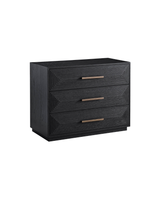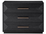 A celebration of texture, the Collins Chest is built with three spacious drawers intricately accented by a geometric carved details and sleek bar hardware. Available in a charcoal finish, it includes an electrical outlet and two USB ports.