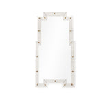 The octagonal Tanta Beveled Glass Mirror is framed by beveled baguettes around an octagonally beveled mirror. The powerful geometry gleams like an emerald-cut diamond. Each element is heat formed, cut, beveled, polished and mirrored for top quality precision fit.